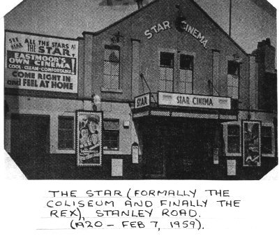 About 1912 Eastmoor got it's own entertainment when William Bagnall built the Coliseum on Stanley Road just across the road from where he lived. In 1933 sound was installed and the name was changed to the Star. Eastmoor residents had there own cinema until 1959 by then its name had changed to the Rex. Since then the building has been used as a Bingo Hall, Dance Hall and is now a billiard hall. A programme for March 1957 gives forthcoming attractions like "The king and I" and "Don't Knock the Rock" with Bill Haley.